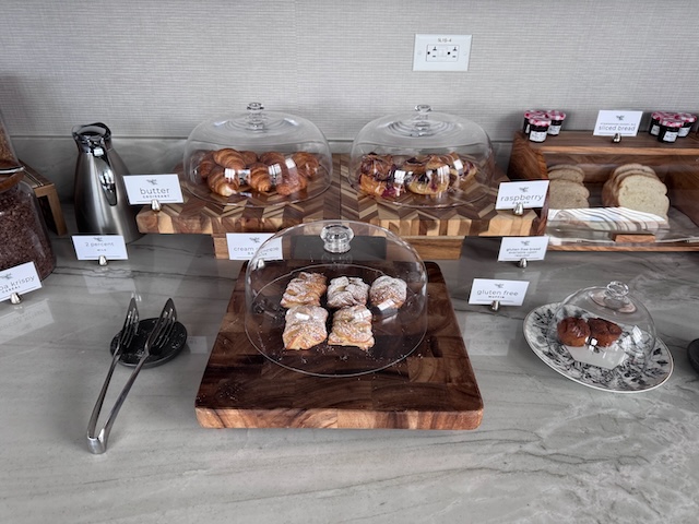 Breakfast in the club lounge was great. Lots of options including carbs and proteins as well as an espresso machine for cappuccinos and lattes. The staff in the lounge was super attentive and constantly refilling food stations. The lounge also had a great assortment of snacks starting at 11am. The cookies were fantastic!